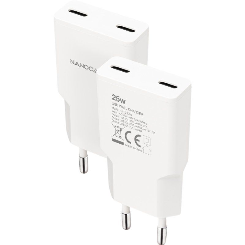CARGADOR PARED 2XUSB-C PD 25W BLANCO NANOCABLE