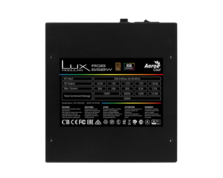 FUENTE ALIM. RGB MODULAR 650W 80+ BRONZE AEROCOOL