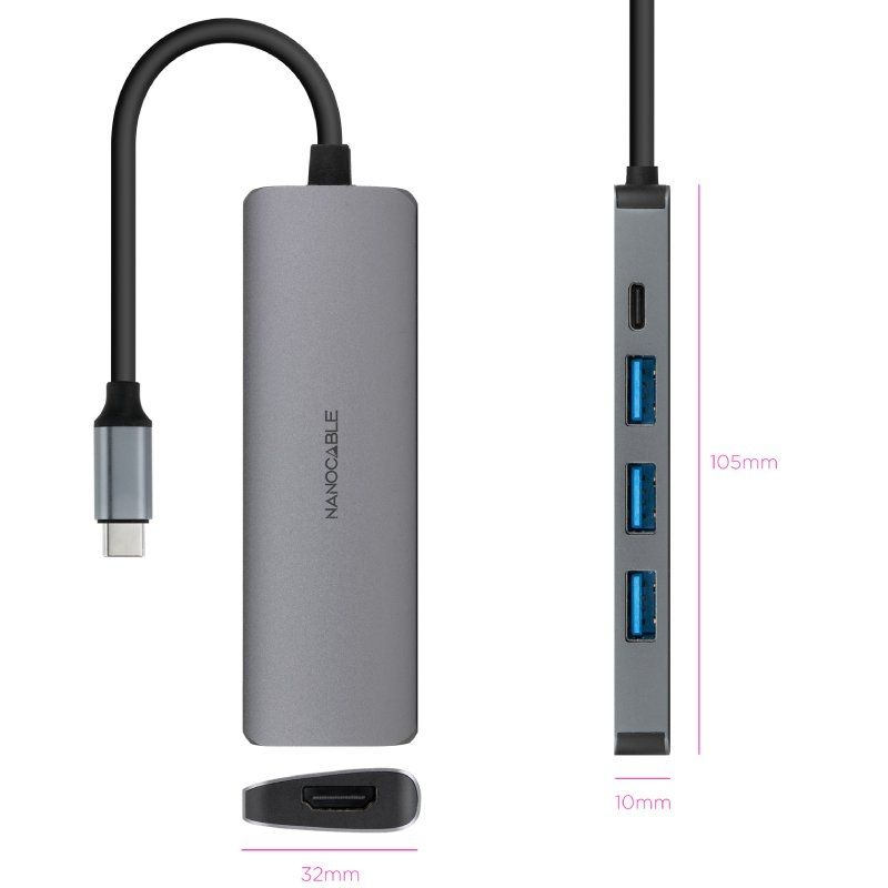 Docking Tipo-C Nanocable 10.16.4605/ 3xUSB/ 1xHDMI 4K/ 1xUSB Tipo-C PD/ Gris