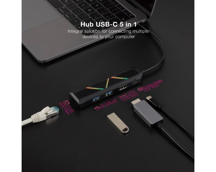 HUB USB-C 5 PUERTOS USB 3.0 RGB NANOCABLE