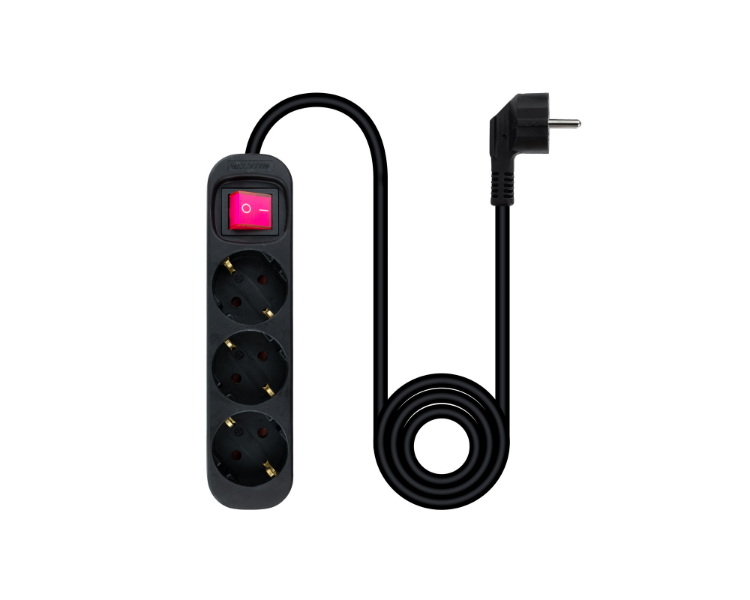 REGLETA PROTECTORA 3 TOMAS CON INTERRUPTOR NEGRO NANOCABLE